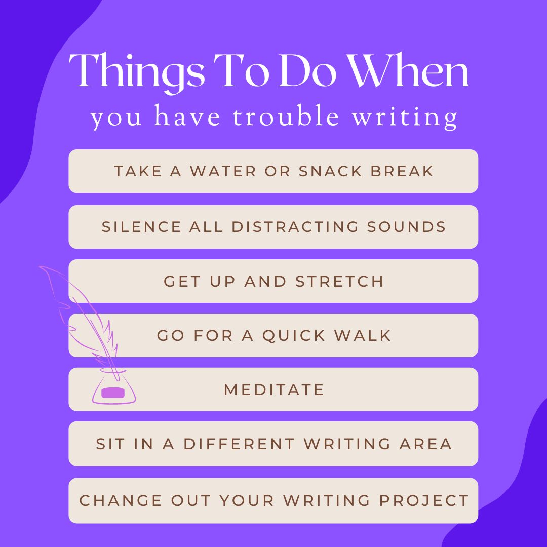 Mostly, take the stress off of yourself. Unless you are on a deadline, most writing can be done anytime. Well, unless like me, you are an overachiever who loves to get started early and set writing schedules. But, ultimately, we can all do our writing at a time that’s best for us – daily, weekly, and psychologically. We just need to give our self some selfcare and permission for our writing projects to be anything we want, need, and dream them to be.