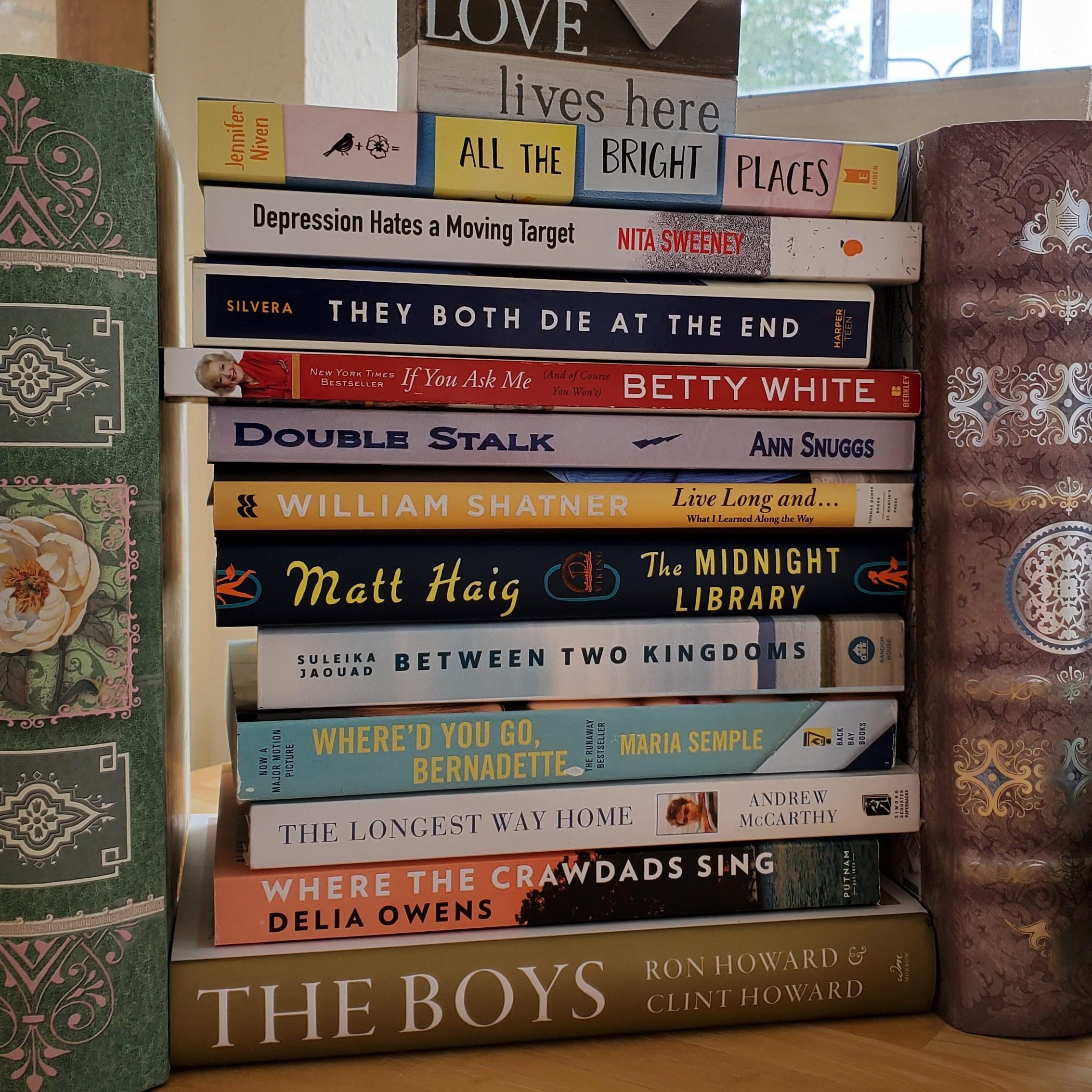 After I got going, I started to read by alternating between memoir and fiction. In early Spring, I realized I needed to invest in a few more memoir books. Once I received them, I interspersed them starting after Jennifer Niven’s “All the Bright Places” to the end of my original TBR pile which ended with Matt Haig’s, “The Midnight Library,” (see photo to right).